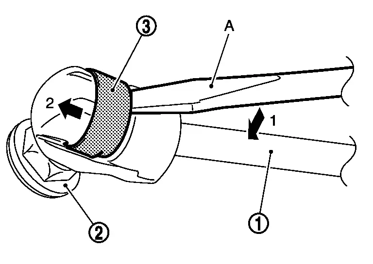 to using a remover tool (A) according to the numerical order 1→2 indicated by arrows as shown in figure.