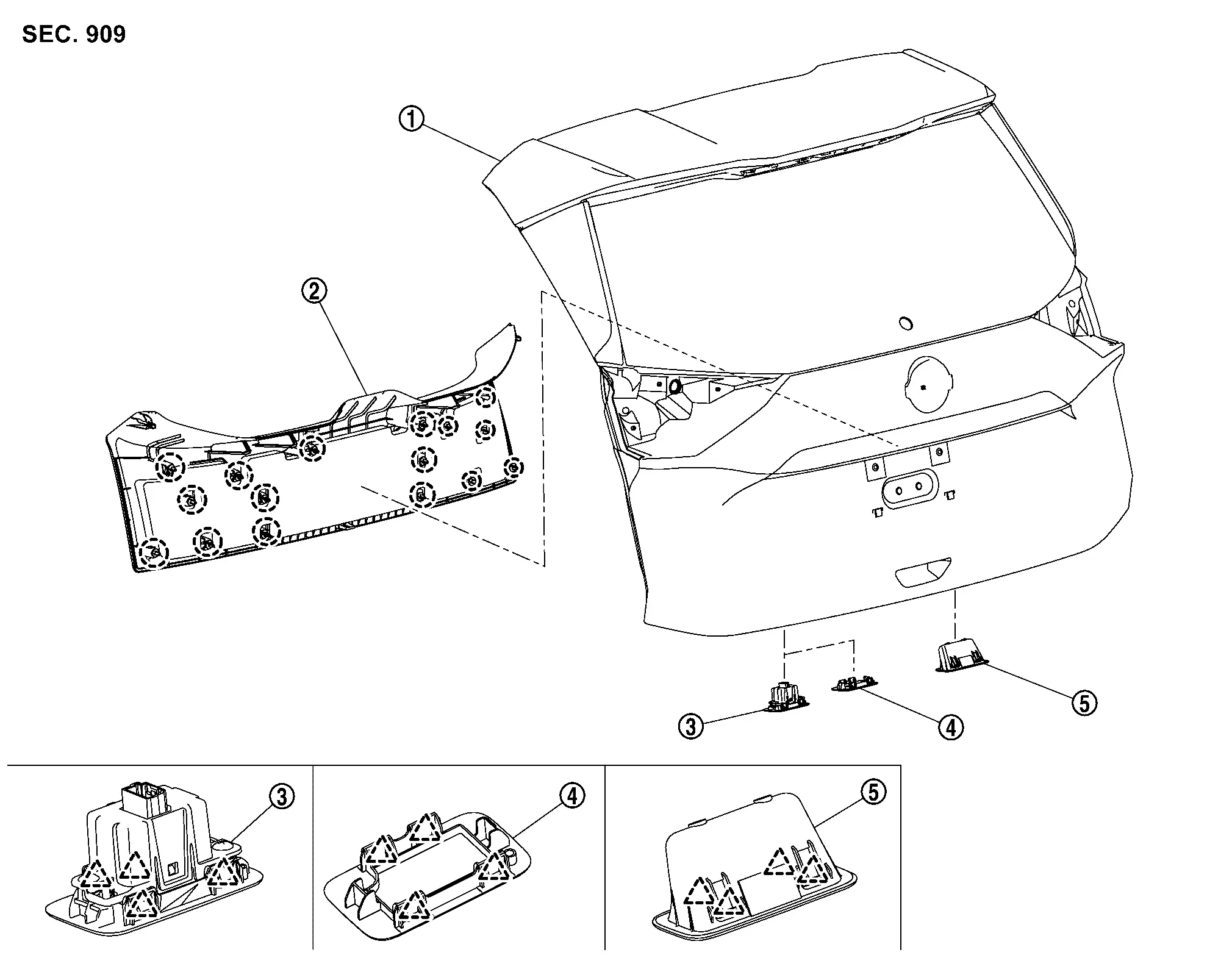 Nissan Rogue (T33) 2021-Present Service Manual: Removal and Installation :: Back Door Trim