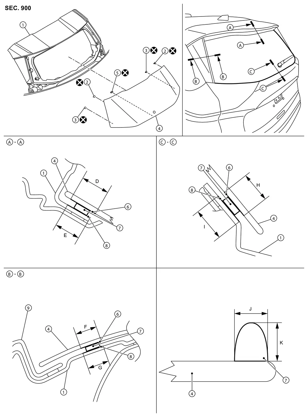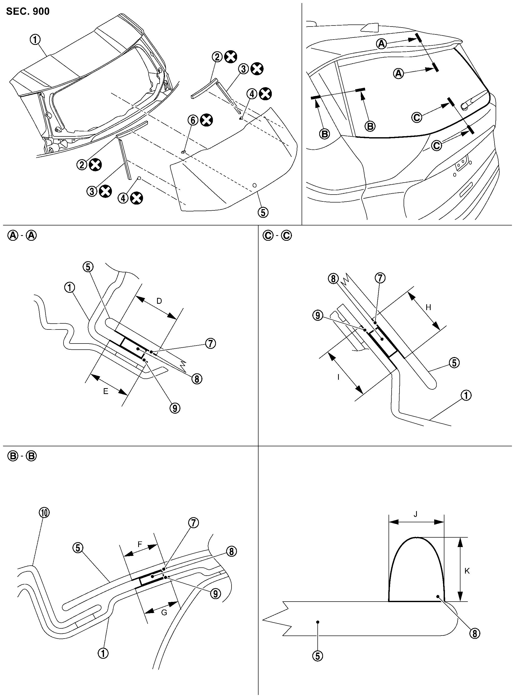 Nissan Rogue (T33) 2021-Present Service Manual: Removal and Installation :: Back Door Window Glass