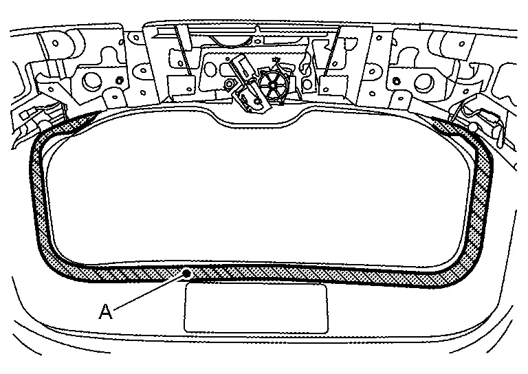 Cut the adhesive using a piano wire.Apply protective tapes (A) on back door outer panel around back door window glass to protect painted surface from damage.