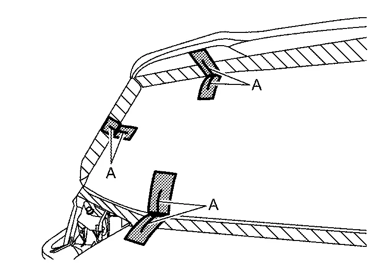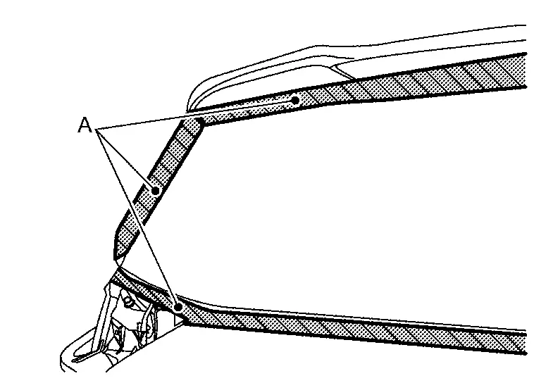 Apply protective tapes (A) on back door outer panel around back door window glass to protect painted surface from damage.