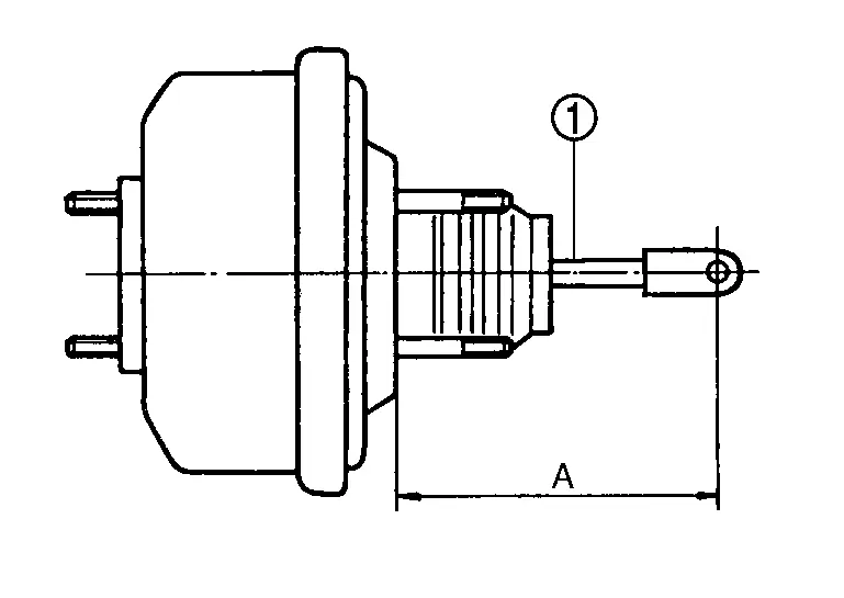 Be careful not to damage brake booster stud bolt threads. If brake booster is tilted during installation, the dash panel may damage threads.