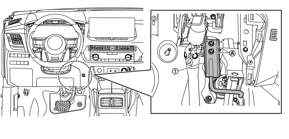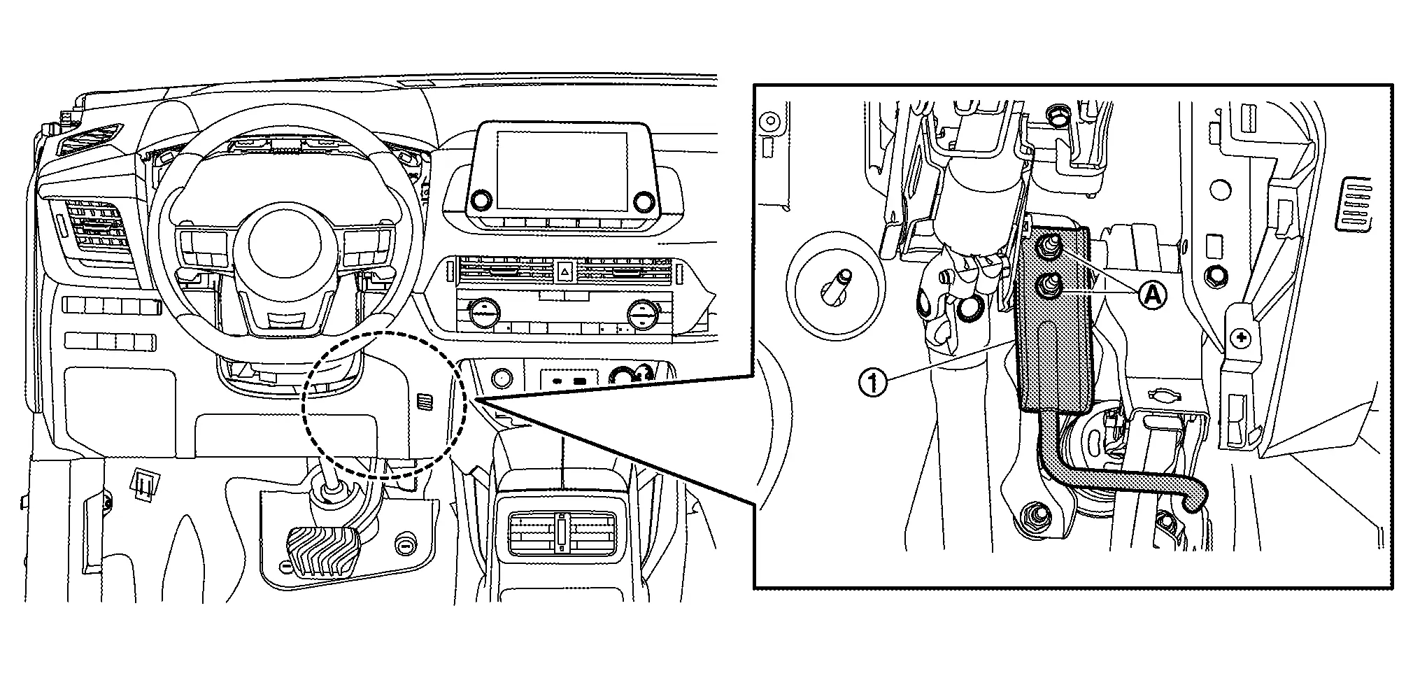 Remove instrument lower panel LH. Refer to Removal and Installation.