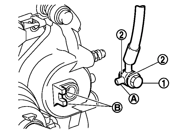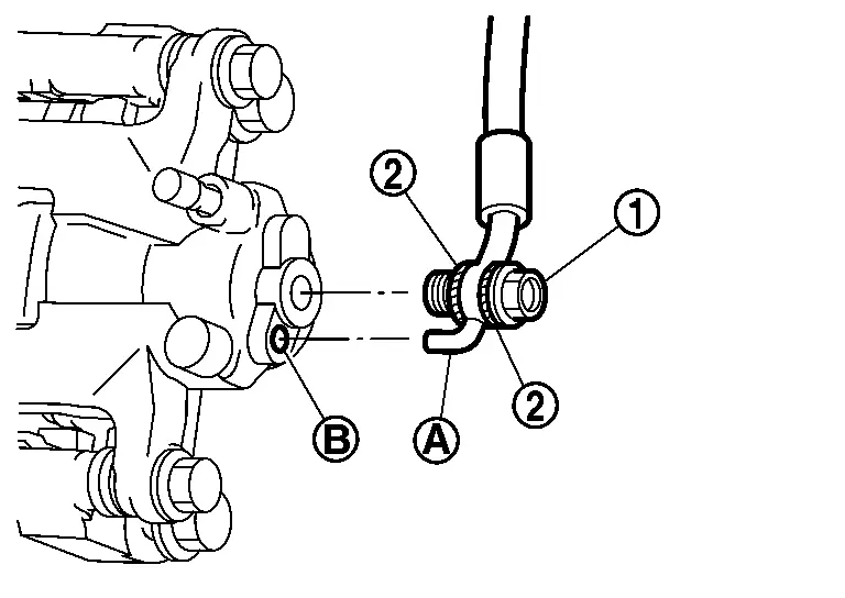 Install the brake tube B to the brake hose A, temporarily tighten the flare nut by hand until it does not rotate further, and fix the brake hose to brake hose brackets with the lock plate.