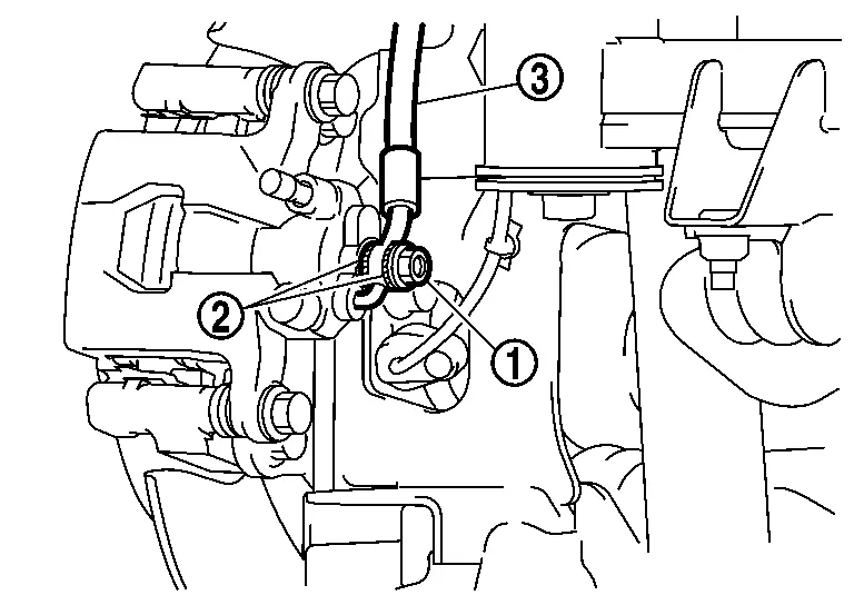 Never depress the brake pedal while removing the brake hose or brake tube. If this is not complied with, brake fluid may splash.