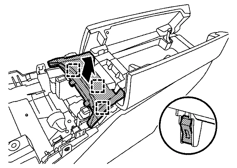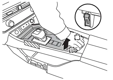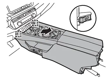 Remove console upper finisher.Open the console lid. Disengage fixing metal clips, and then remove console upper finisher.