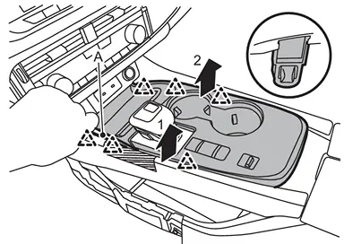 Remove console finisher assembly.Remove cup holder mat, and then remove fixing screw (A) .