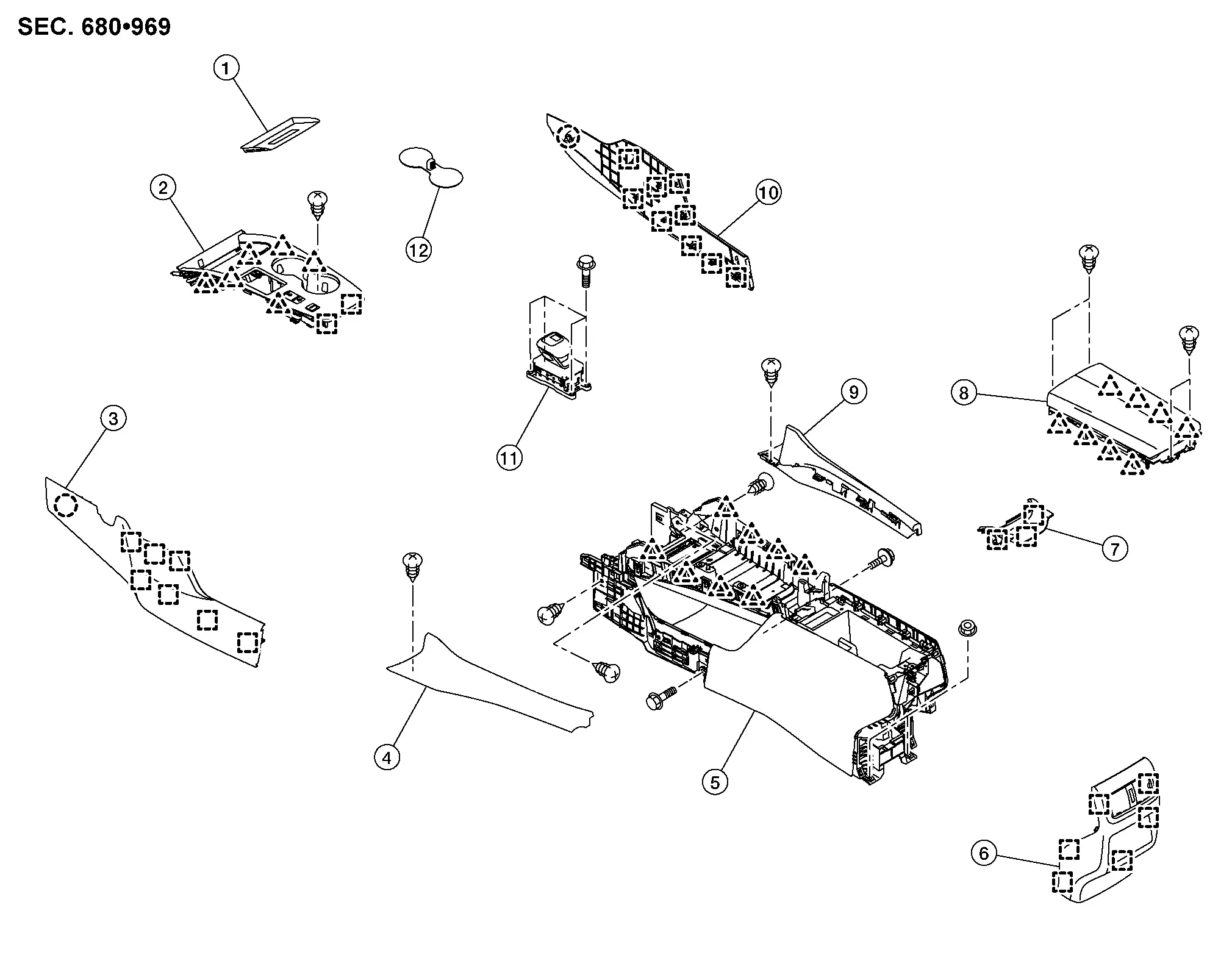 | 7. | Console upper finisher | 8. | Console lid assembly | 9. | Panel console RH |