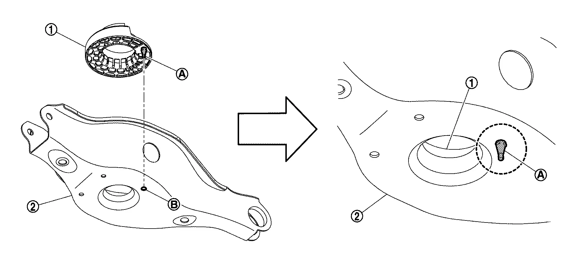 Perform final tightening of fixing parts at the Nissan Ariya vehicle installation position (rubber bushing), under unladen conditions with tires on level ground.