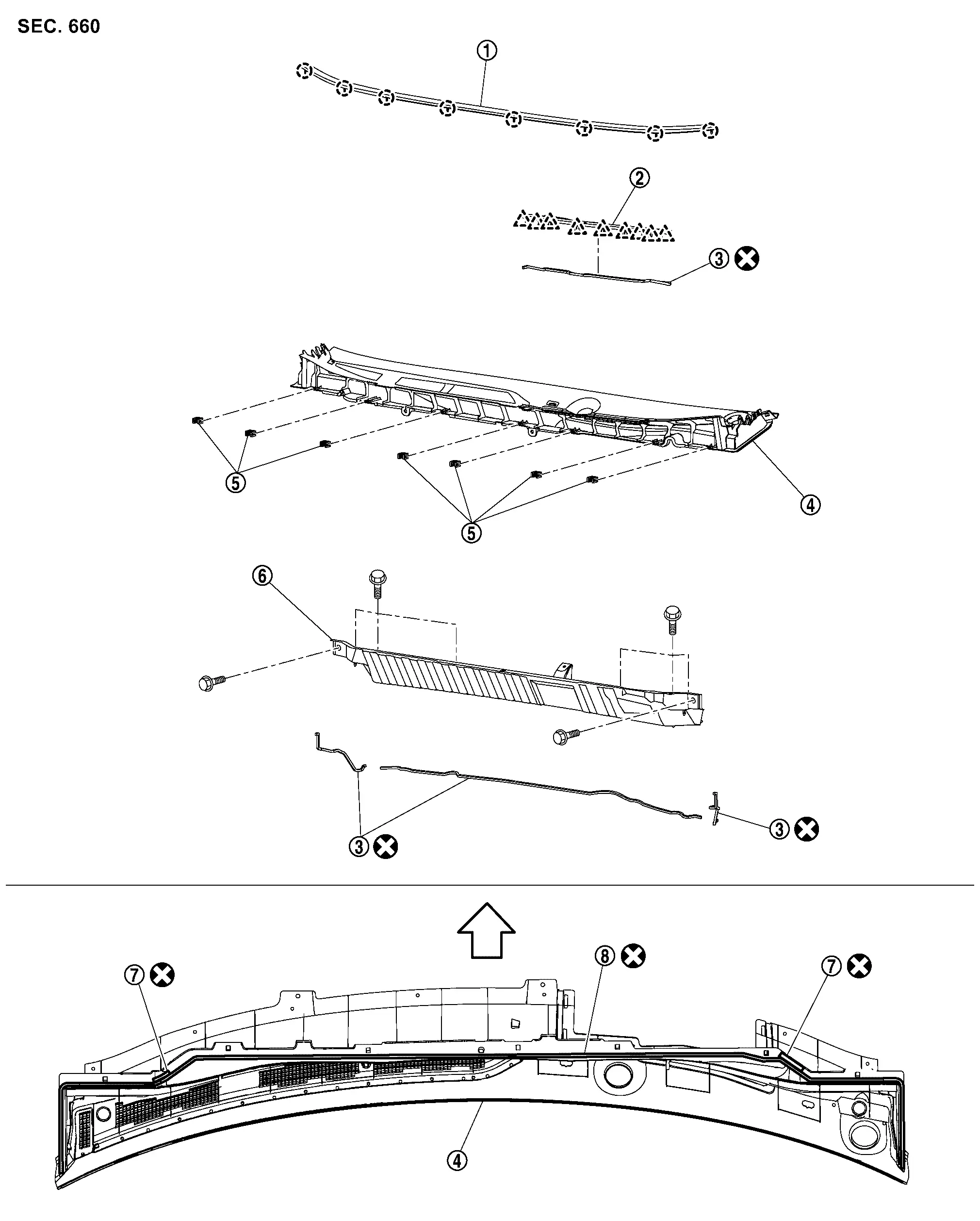 | 4. | Cowl top cover | 5. | Cowl top grille clip | 6. | Cowl top extension |
