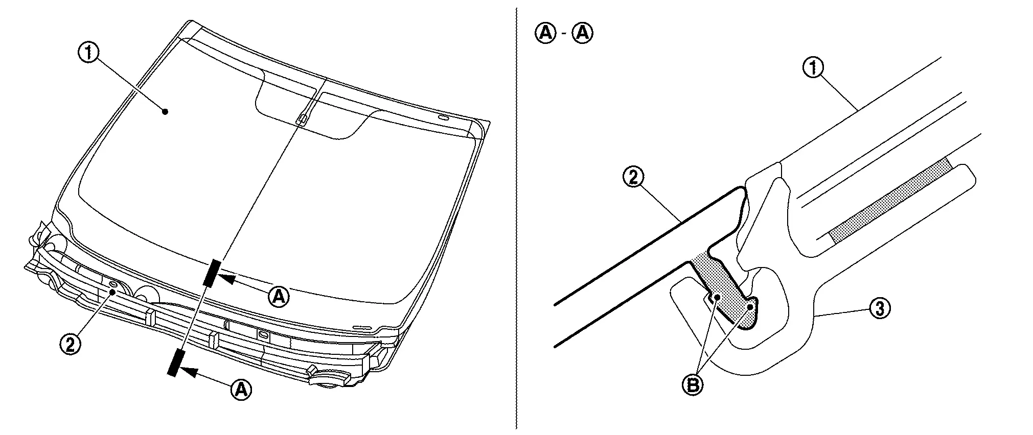Remove front wiper arm (LH and RH). Refer to Removal and Installation.