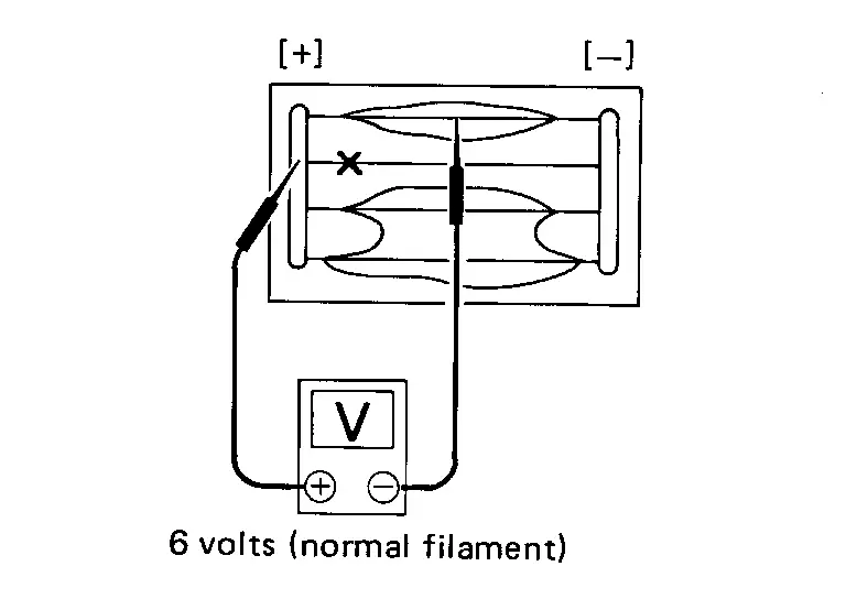Attach probe circuit tester (in Volt range) to middle portion of each filament.