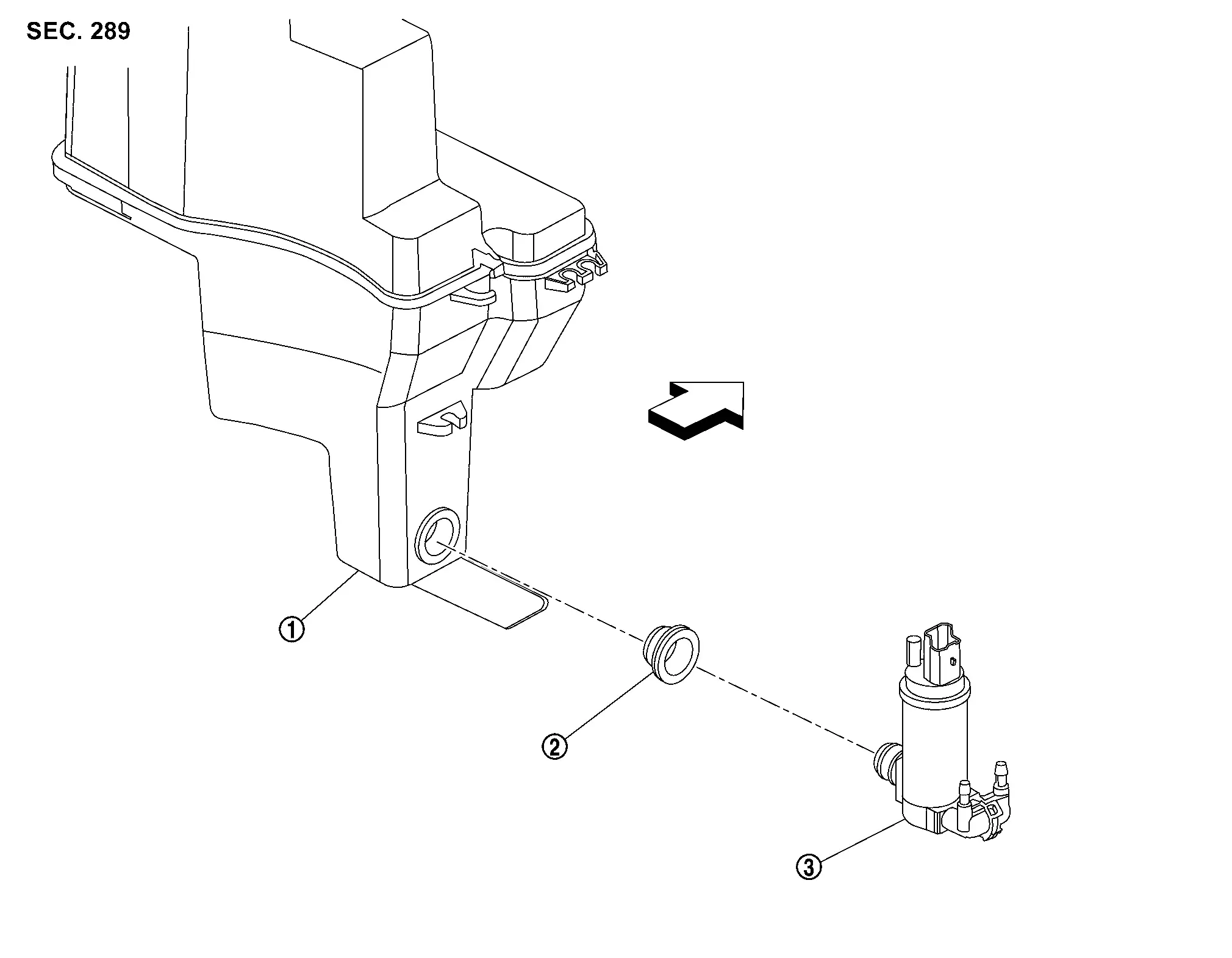 Nissan Rogue (T33) 2021-Present Service Manual: Removal and Installation :: Front and Rear Washer Pump