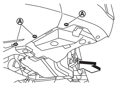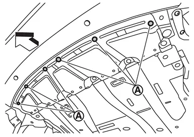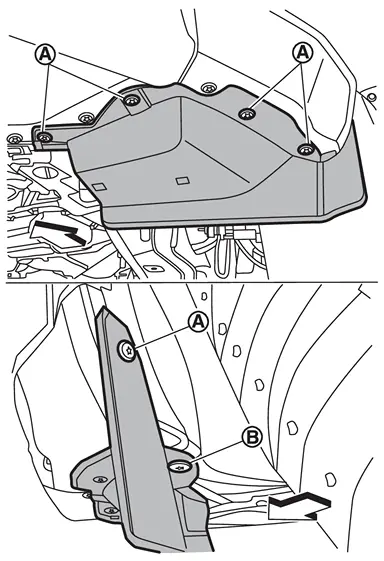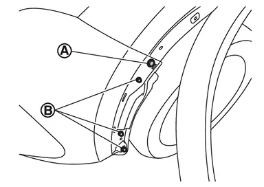 Remove front spoiler fixing screws (A) and clip (B), and then remove front spoiler.