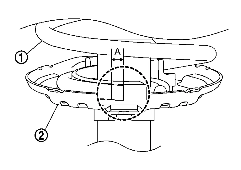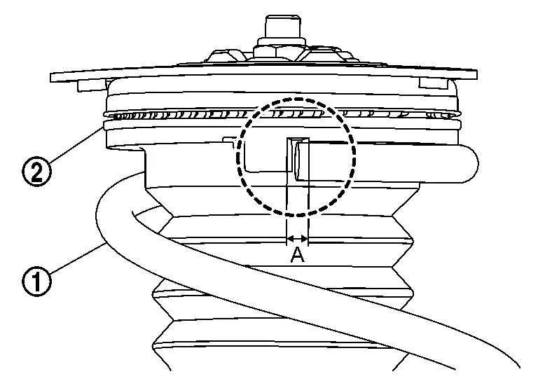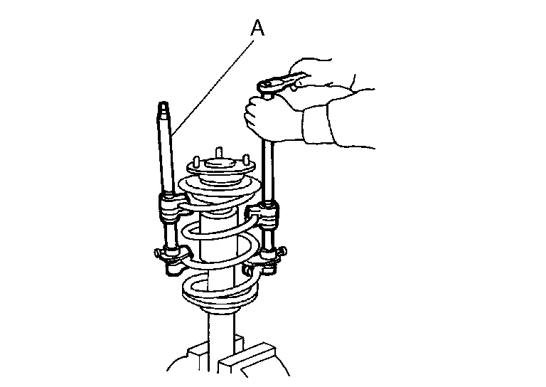 Using a spring compressor (A) (commercial service tool), compress coil spring between spring upper seat and lower seat (strut assembly) until coil spring with a spring compressor is free.