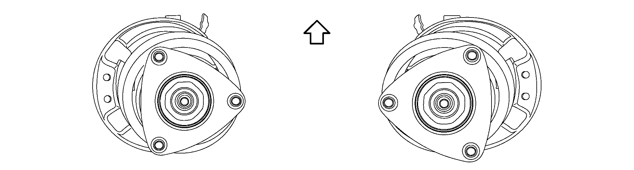 When installing strut assembly to the vehicle, set the mounting insulator to the direction shown in the figure.