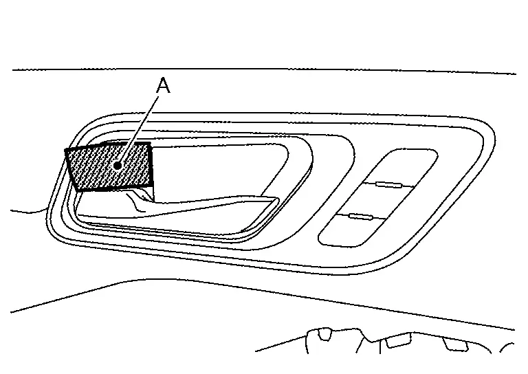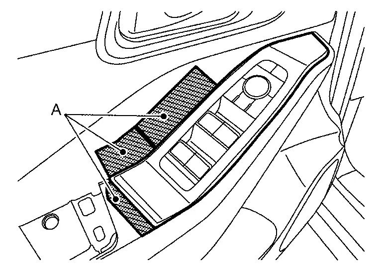 Remove power window switch finisher.Apply protective tapes (A) on front door finisher to protect it from damage.