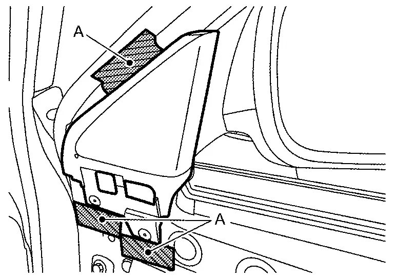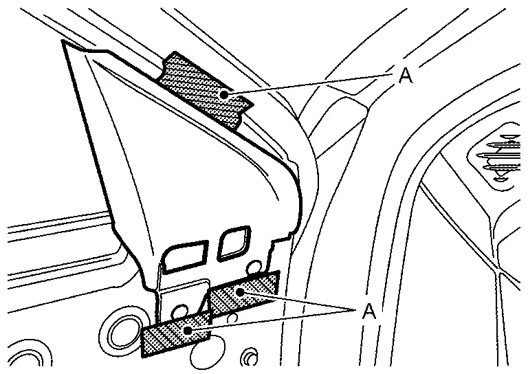 Remove door corner coverApply protective tapes (A) on front door panel to protect it from damage.