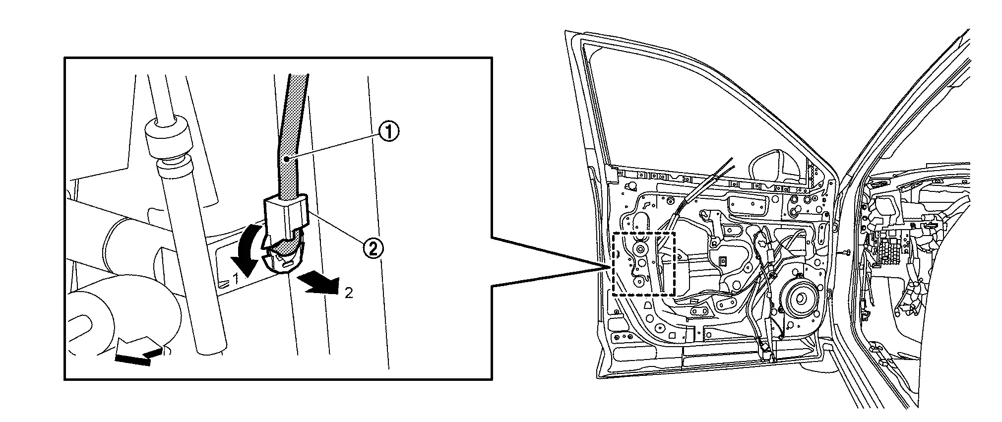 Disengage front door outside handle harness connector