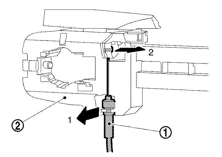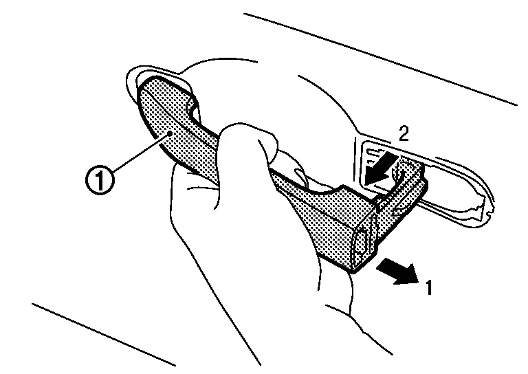 toward rear of Nissan Ariya vehicle and remove it according to the numerical order 1→2 indicated by arrows as shown in figure.