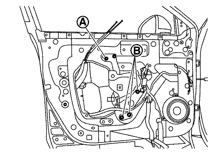 Remove front door regulator assembly. Refer to Removal and Installation.
