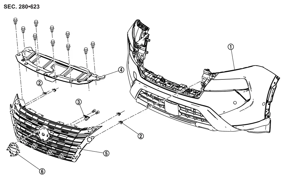 Nissan Rogue (T33) 2021-Present Service Manual: Removal and Installation :: Front Grille
