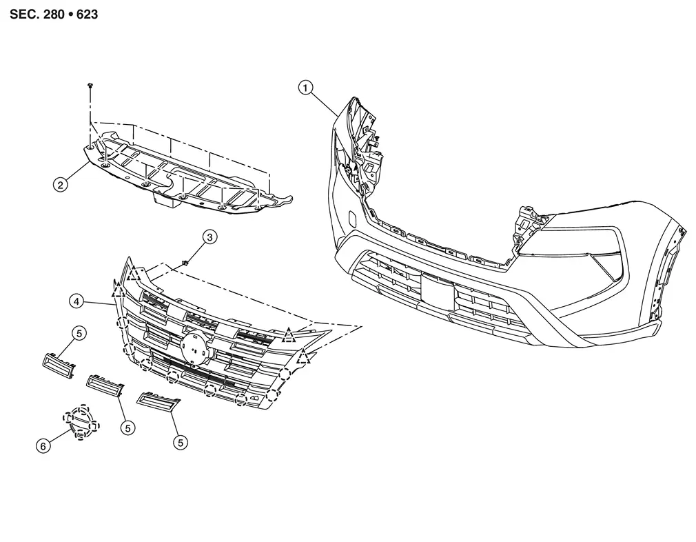 | 4. | Front grille cover | 5. | Front grille | 6. | Front emblem |