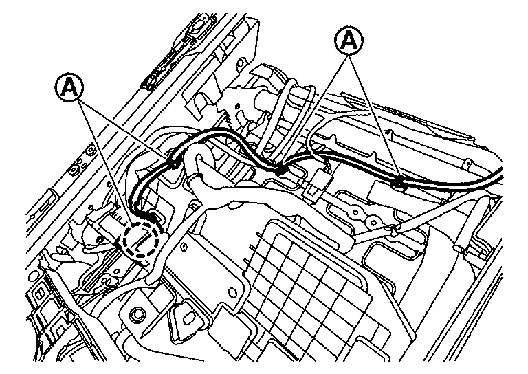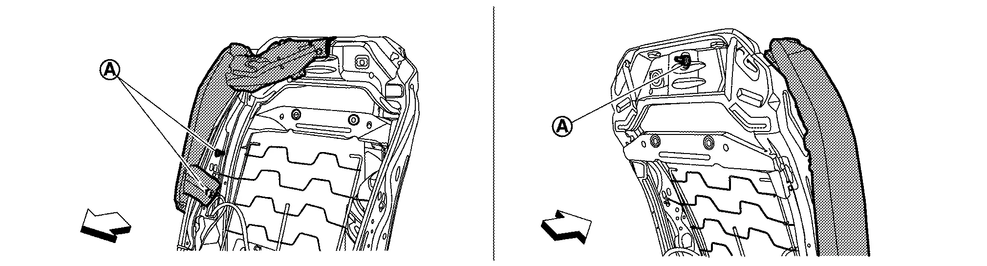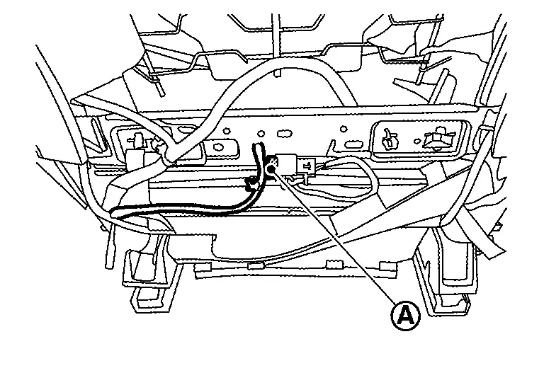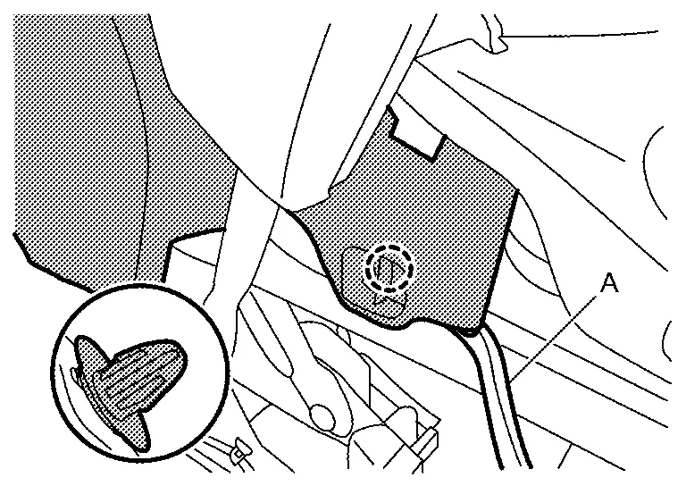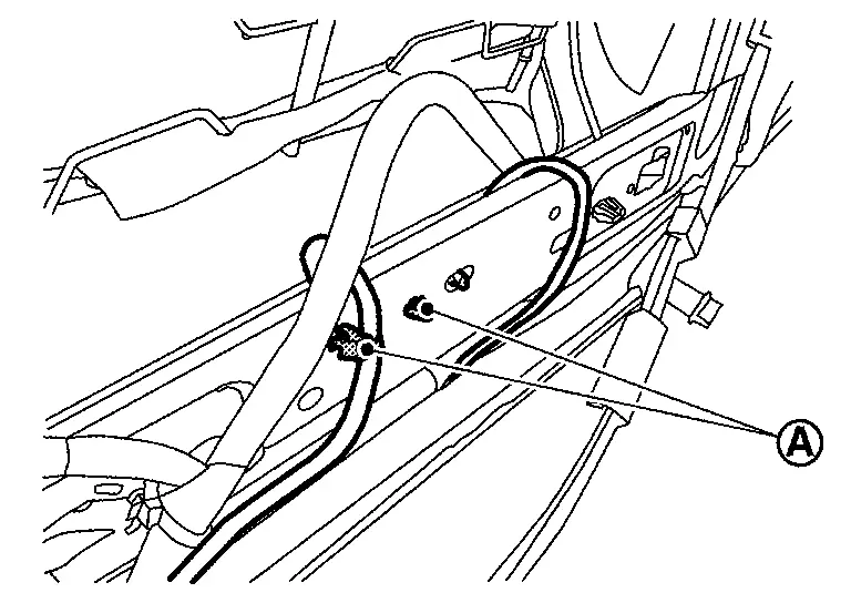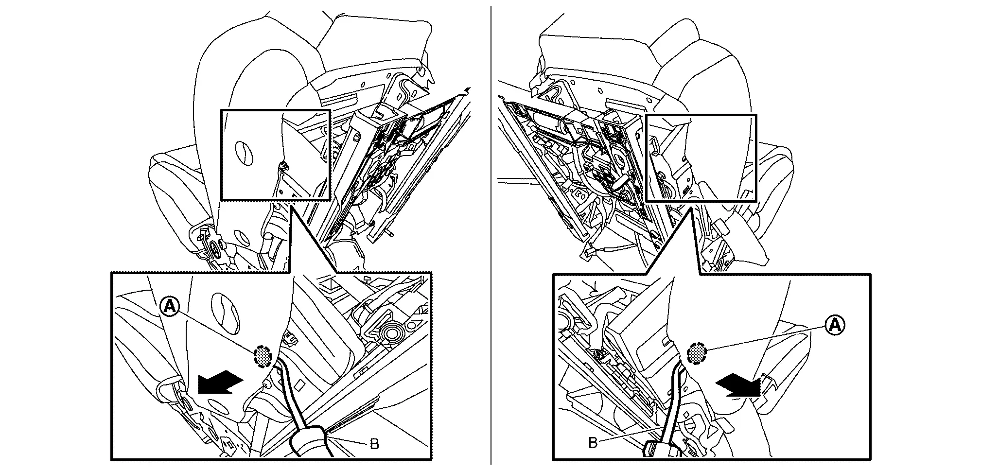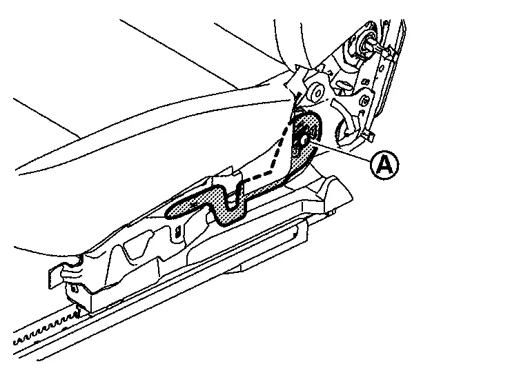 Disengage seat harness and harness connector fixing clips (A), and then remove inside seat cushion finisher lower.