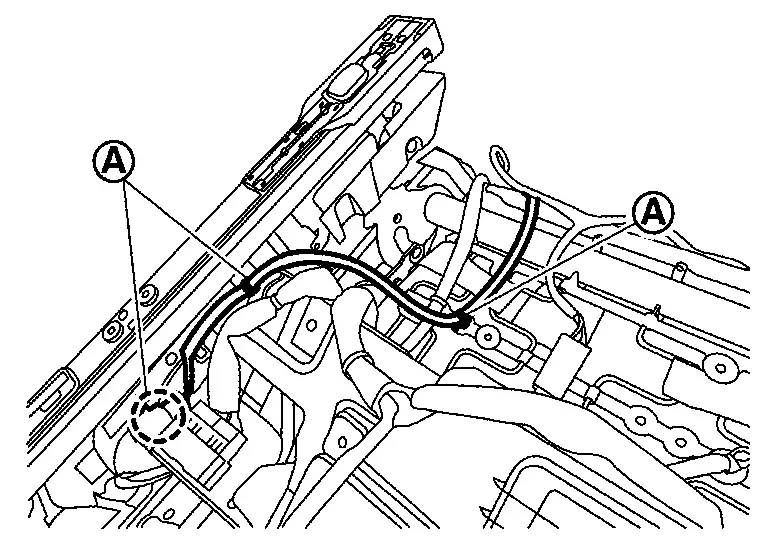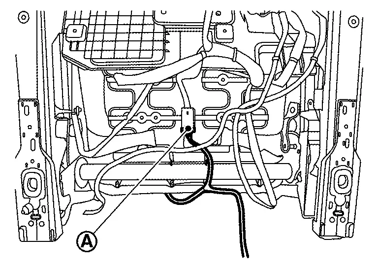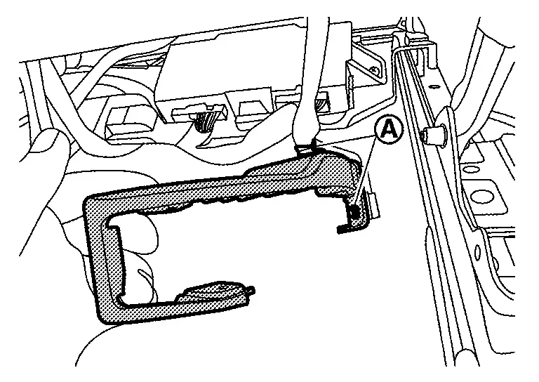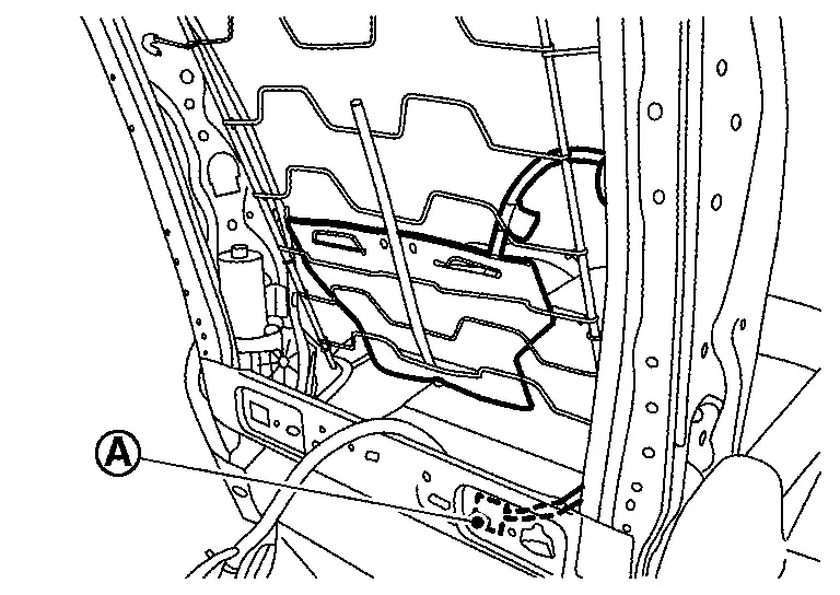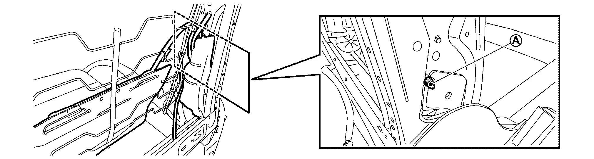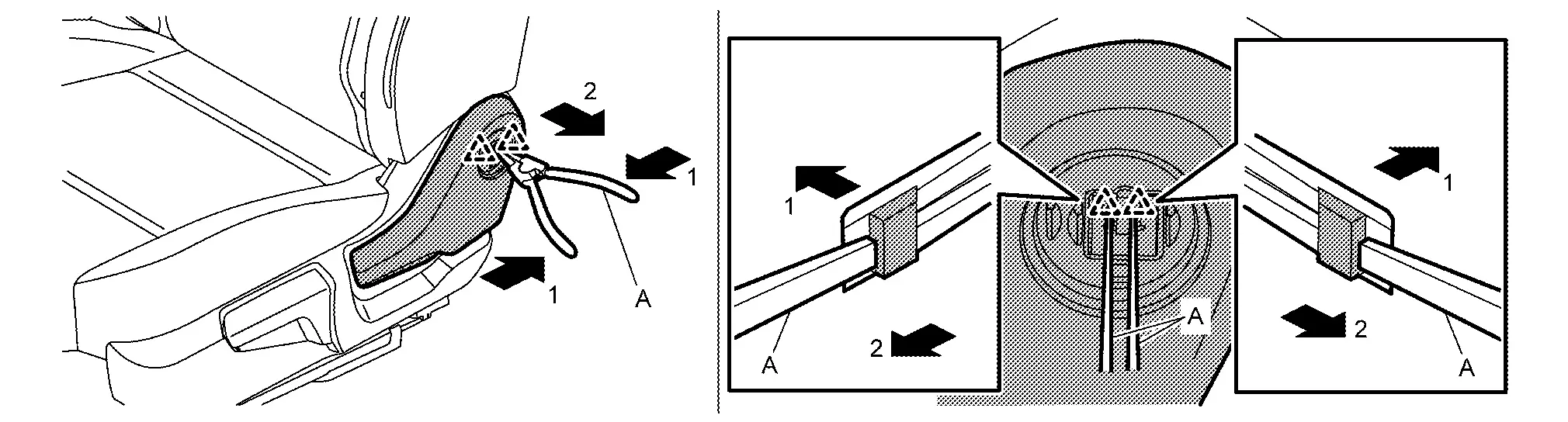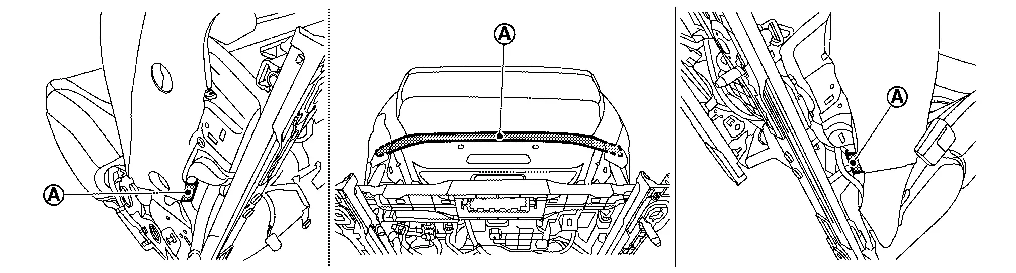 Disengage seat harness and harness connector fixing clips (A), and then remove inside seat cushion finisher lower.