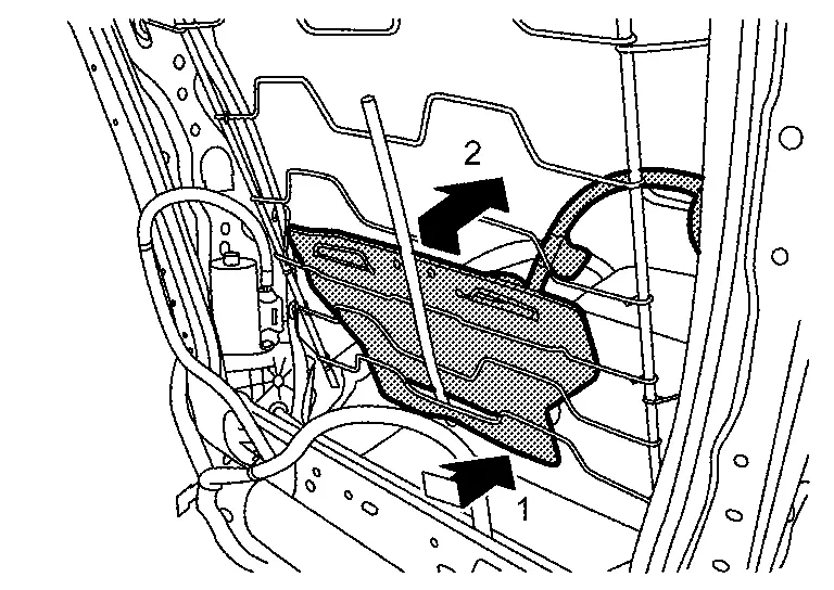 Remove seat cushion silencer. Refer to Removal and Installation.