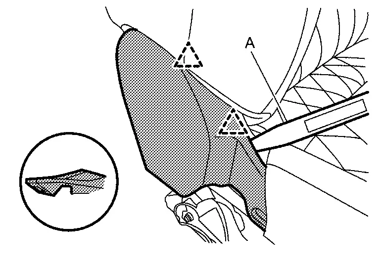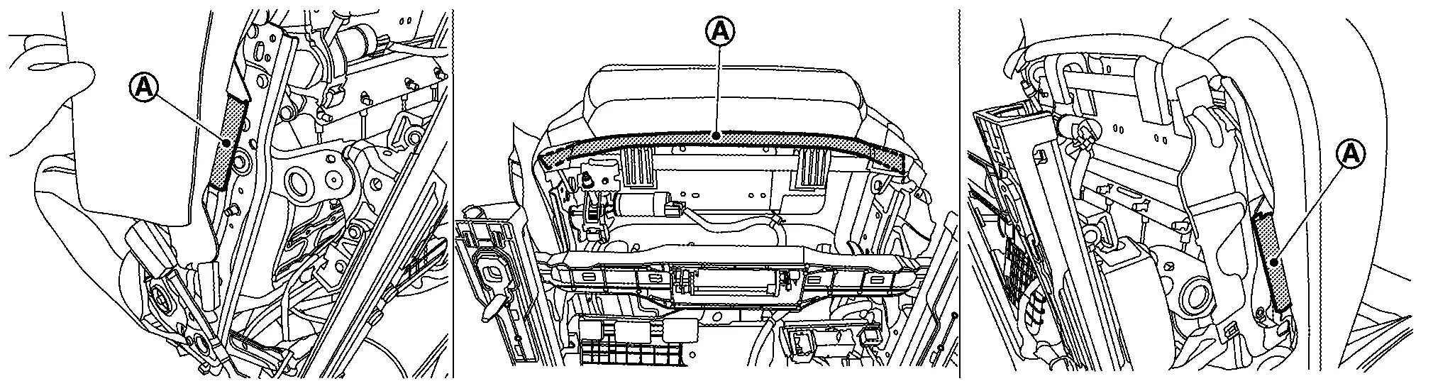 Remove outside seat cushion finisher outer.Apply protect tape (A) (driver seat).