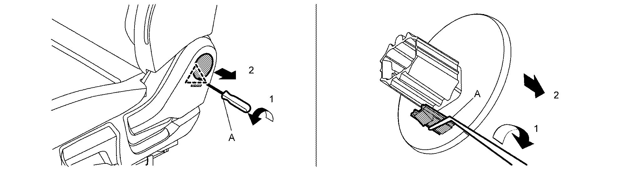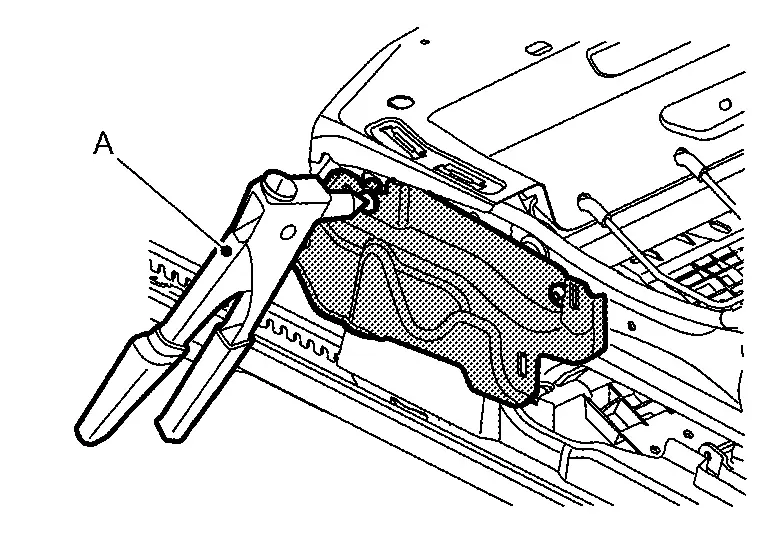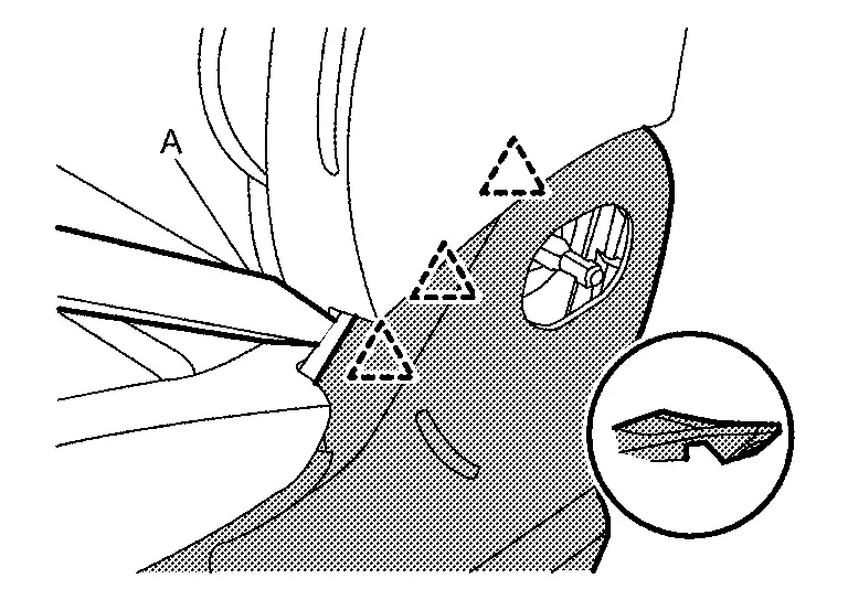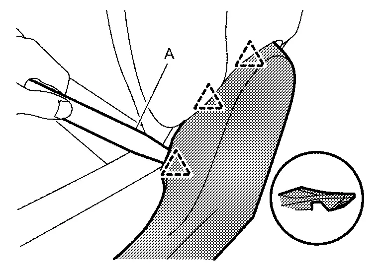 Disengage inside seat cushion finisher outer fixing pawls of upper side using a remover tool (A).