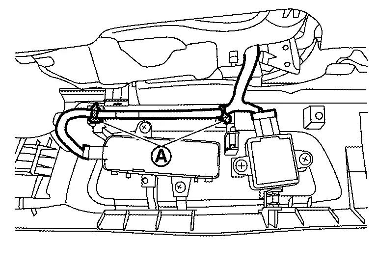 Disengage front center air bag module harness connector and harness fixing clips (A) (with front center air bag module).