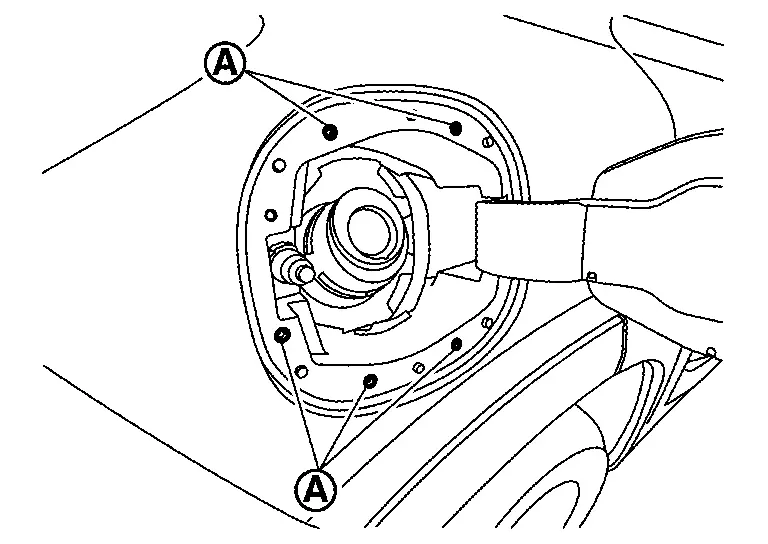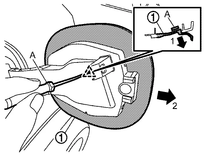 Disengage fuel filler lid fixing pawl using a removal tool (A), and then remove fuel filler lid