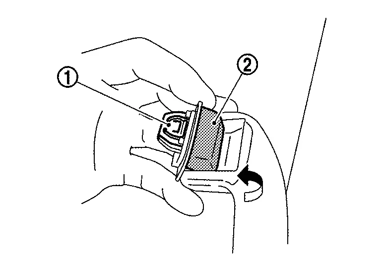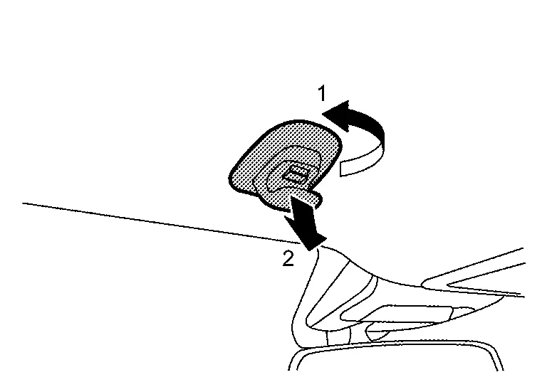 Remove sun visor holder (LH and RH) according to numerical order 1→2 indicated by arrows as shown in the figure.