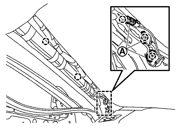 Remove following parts of front pillar LH.Disconnect harness connectors