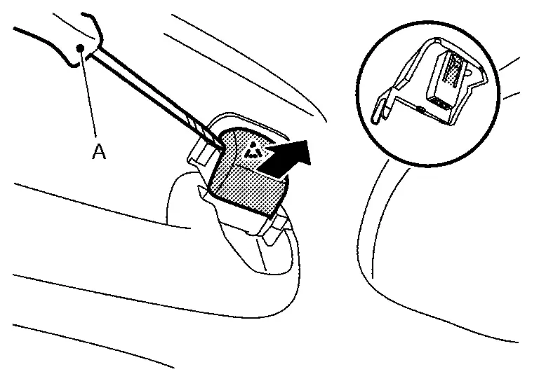 Remove all assist grips.Disengage assist grip cap fixing pawl using a remover tool (A), and then remove assist grip cap.