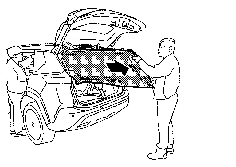 Remove luggage side upper finisher (LH and RH). Refer to Removal and Installation.