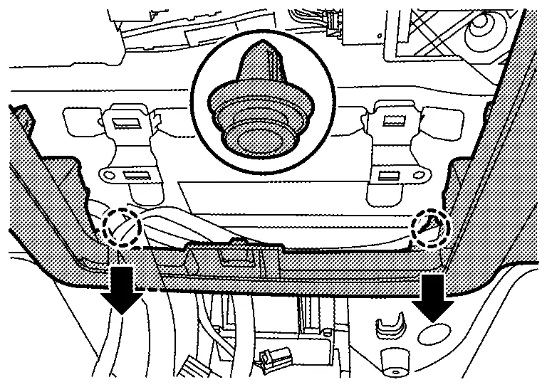 Remove front camera unit cover.Disengage front camera unit cover fixing clips of rear end position indicated by arrows as shown in the figure.