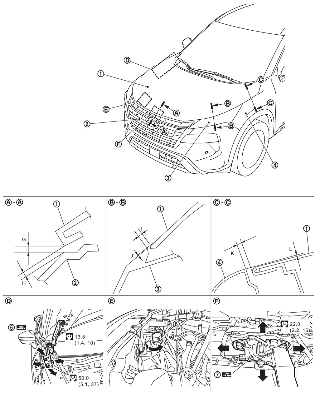Nissan Rogue (T33) 2021-Present Service Manual: Removal and Installation :: Hood