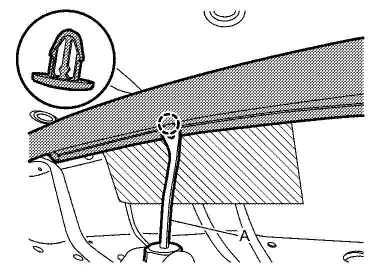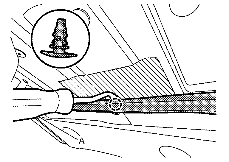 Disengage fixing clips on the reverse side of hood seal using a removal tool (A).