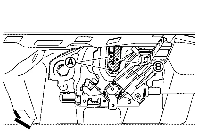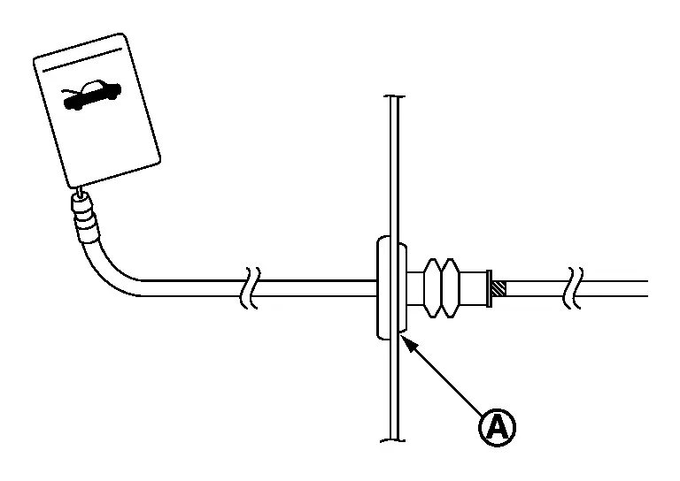 Remove grommet of the lower dash, and pull the hood lock release cable assembly toward inside Nissan Ariya vehicle.