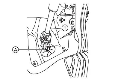 Remove bolt (A). Separate lower joint (1) from steering column.