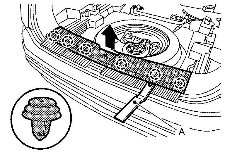 Remove luggage rear plate fixing clips using a remover tool (A).