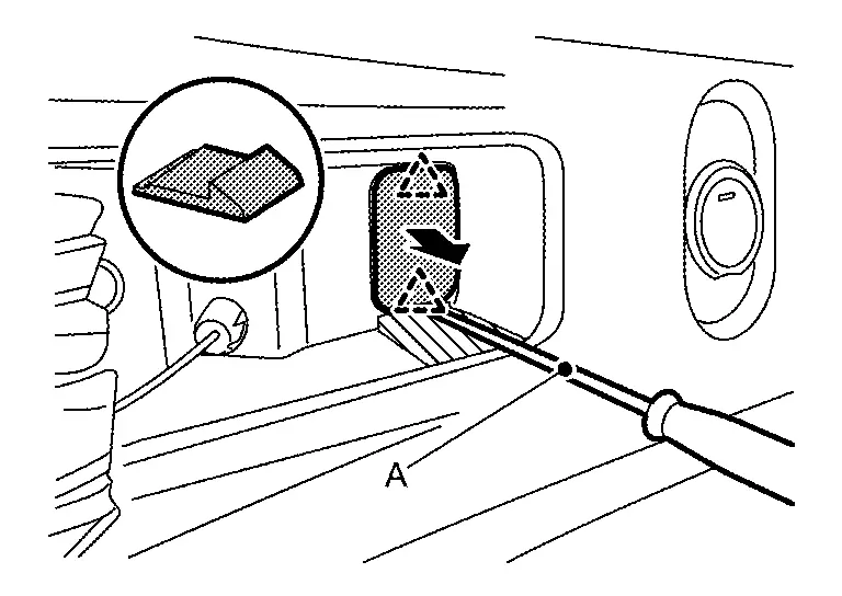 Disengage seatback release lever cap fixing pawls using a remover tool (A) and then remote control lever cap.