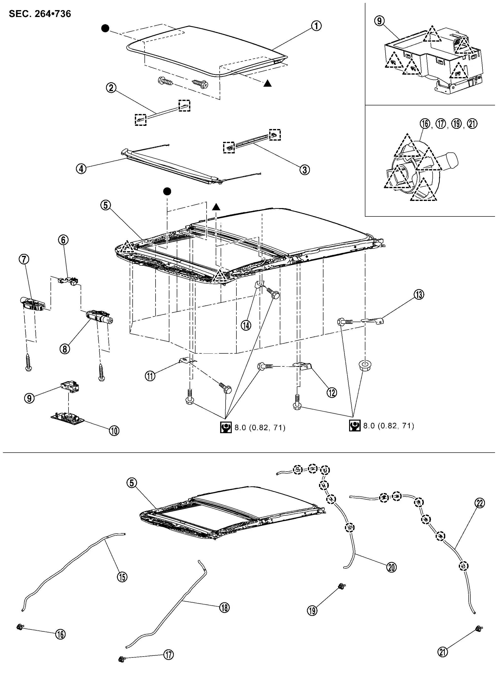 Nissan Rogue (T33) 2021-Present Service Manual: Removal and Installation :: Moonroof Unit Assembly