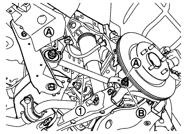 Perform final tightening of fixing parts at the vehicle installation position (rubber bushing), under unladen conditions with tires on level ground.