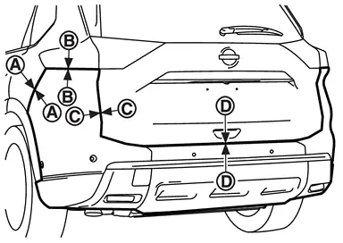 Portion Clearance Surface height difference Rear bumper fascia – Body side outer panel A