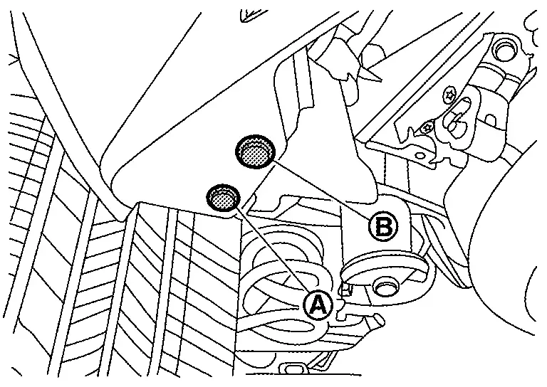 Remove rear bumper fascia mounting bolt (A) and fixing clip (B).
