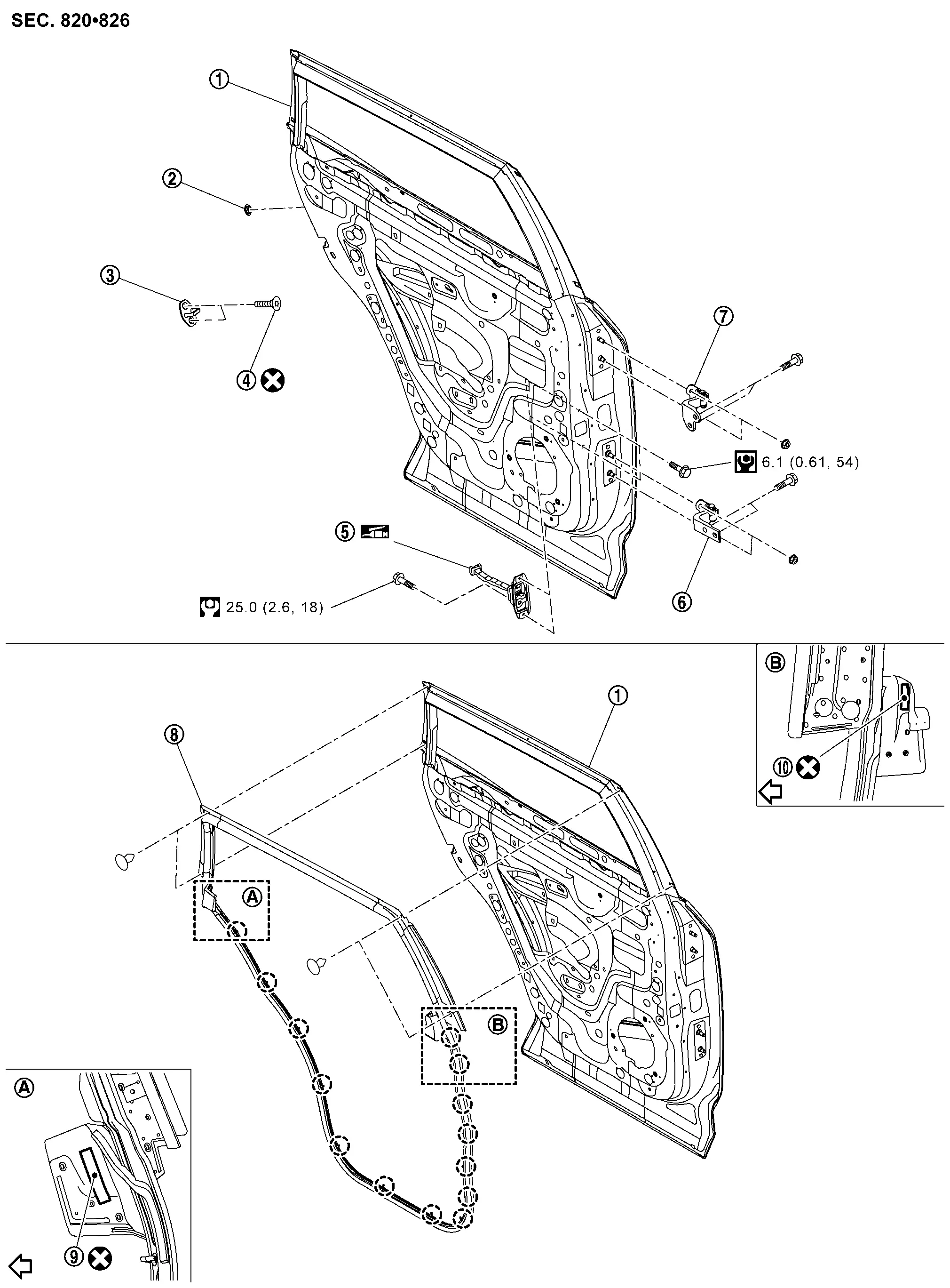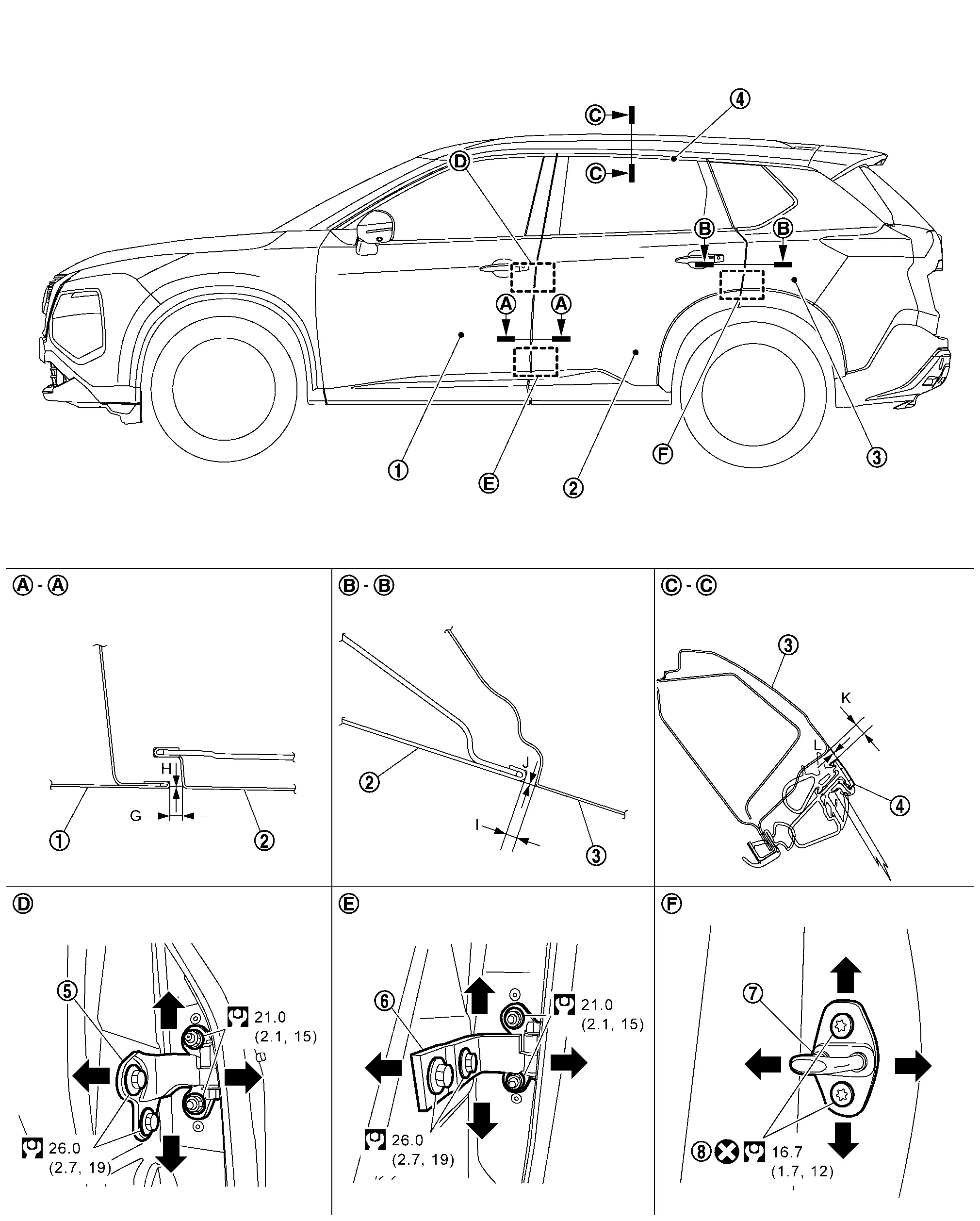 Nissan Rogue (T33) 2021-Present Service Manual: Removal and Installation :: Rear Door